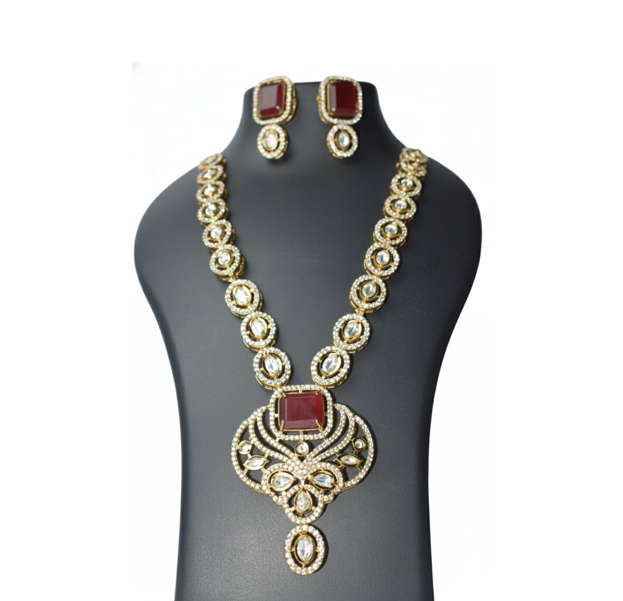 Exquisite maroon stone Kundan necklace set featuring intricate craftsmanship and traditional charm.,Perfect for weddings and festive occasions, adding a regal touch to any ethnic ensemble.